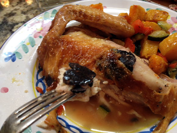 Please don’t cut corners and use store-bought bread crumbs. No bueno. Go the extra mile and toast your own bread crumbs, keeping them with a coarse texture. As we sat down and savored the meal, Phil said “this dish would be a star in the best Parisian bistrots”. Mission accomplished, Sally pats herself on the back, although patting Suzanne’s back would be more appropriate. The egg yolk self-transforms into a luscious sauce that envelops the flavorful chicken, and the pecorino pudding underneath provides the exact amount of sharpness, but with a soft and pleasant texture. What a great combination of components!