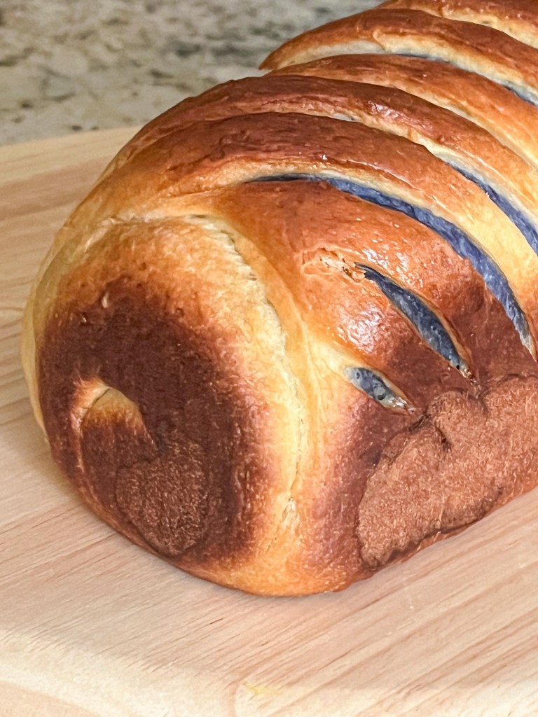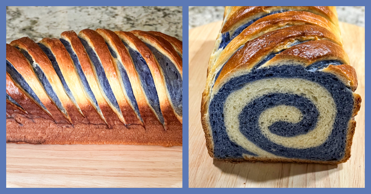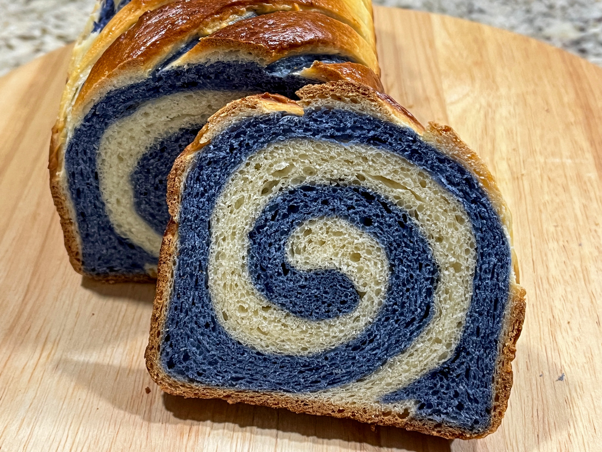The bread has a very mild flavor, the butterfly pea flower does not contribute much in terms of flavor, just color. I will be making other versions for sure…