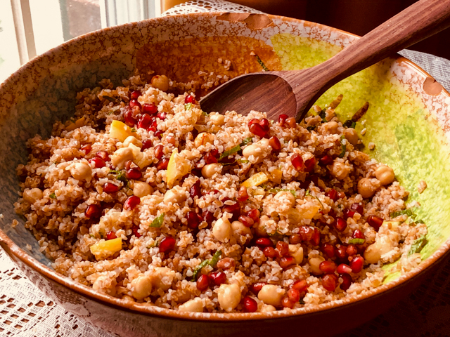 BULGUR AND CHICKPEA SALAD WITH POMEGRANATE SEEDS