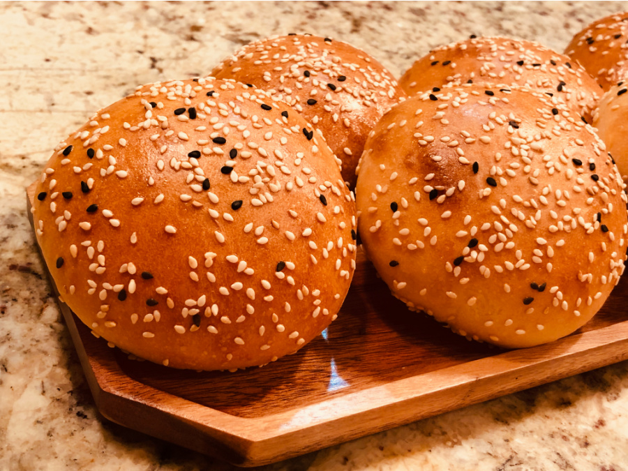 Divide the dough into six portions (about 120 g each). Form into tight little balls and allow to proof at room temperature for 2 to 3 hours. Heat the oven to 375F, brush the surface of the rolls with egg wash and sprinkle sesame seeds. Bake for about 20 minutes, until golden brown and internal temperature of 190F. Cool completely on a rack before slicing.