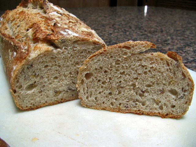 Comments: This loaf of bread lasted 5 days, and held up pretty well up to its end. Usually, after the second day we opt for toasting, but this particular loaf was good enough with a very brief warming in our electric oven. We kept it at room temperature over the cutting board with the cut side down, and sliced only what we were going to consume right away. It goes well with pretty much anything, from ham to turkey, jam to peanut butter, or butter with paper thin slices of radishes and a little sea salt… delicious!