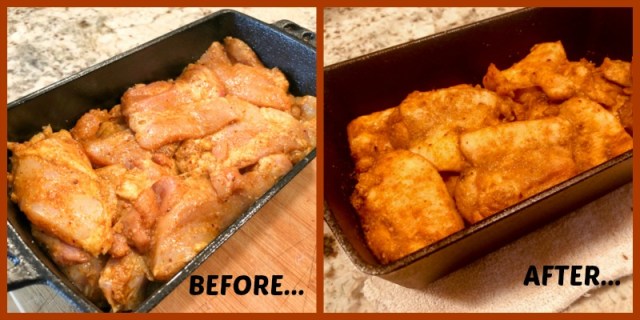 Comments: When I watched the show, I kept telling myself there’s no way this could have a happy ending. It all seemed too simple. I doubted the chicken would be fully cooked, and expected it to have too firm a texture. But something told me to just give it a try. My main modification was to reduce the salt and the cayenne. I am not sure if it was a typo in the recipe as published in the site, but it called for 2 full tablespoons of salt and it was truly too much (I made this recipe twice, the second time with my regular amount of salt, and that’s the version I share with you today).
