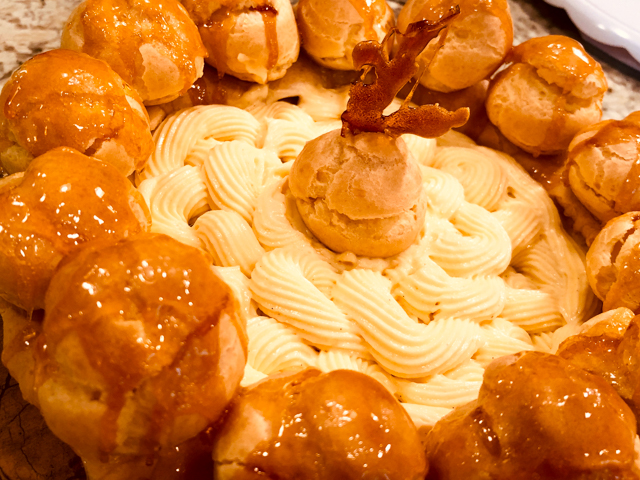 Comments: Well, I do realize that it seems a bit of a stretch to post this recipe as simple and then come up with quite a few components to make it. As I mentioned, you can simplify it quite a bit. For instance, you can skip the two different types of piped decoration and do a drizzle of melted dark chocolate all over it. That would work well. A shower of golden sprinkles for fun and a bit of a dressed up look. The velvet spray is also optional. I find it fun to do, though, and it helps me deal with guilty feelings of having a sprayer sitting in the basement just for my patisserie adventures. It’s nice to put it to use.