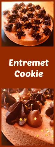 …and the Entremet Cookie is born! I cannot take credit for it, so before I even start talking about this delicious dessert, let me thank Maxime, from Empreintesucree.fr. She is a professional pâtissière who shares very detailed recipes of her beautiful productions. If you are a bit intimidated by entremet type cakes, this one is an excellent starting point, especially if you simplify the decoration steps (see comments). I guarantee it will still impress your guests.