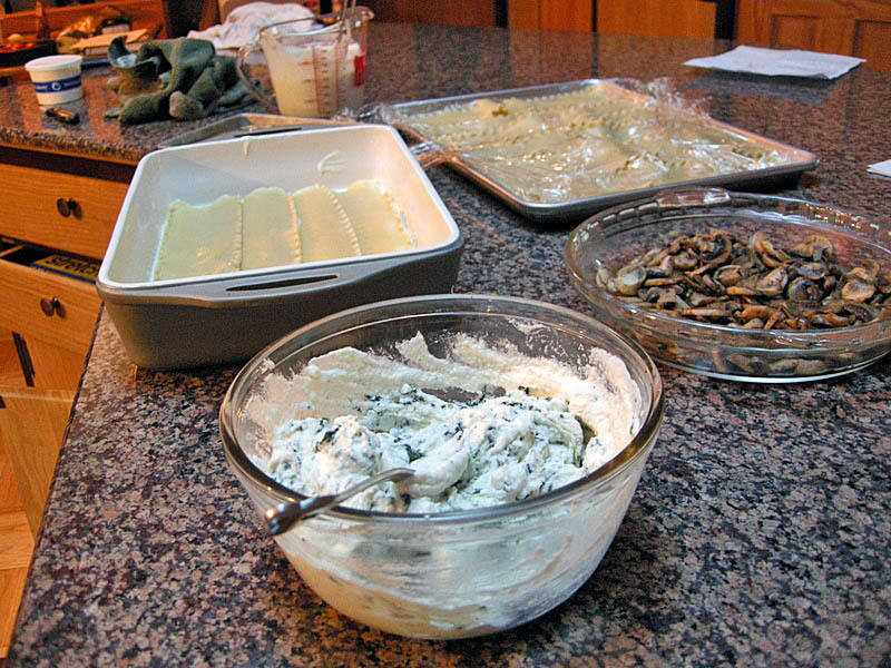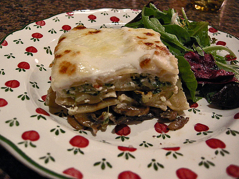 Comments: Most current recipes call for no-boil lasagna noodles. I’ve used them, and in a pinch I’d do it again, but not for a special dinner. It is a little extra work to boil the pasta, but your guests (and you) deserve it. With boiled noodles the lasagna bakes more uniformly and the different layers better enrich each other, so that the final dish becomes more than the simple sum of its parts. It’s gastronomic synergy in action ;-). If you don’t believe me, make two small, identical lasagnas, one by boiling the pasta and the other using the “no-boil” method. Then, let your taste buds be the judge.