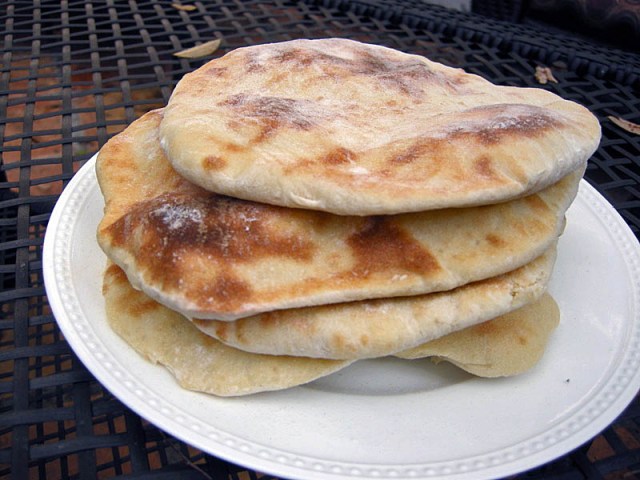 Comments: If you look at the original recipe, you’ll see that I considerably reduced the amount of spices (and also the amount of olive oil, as lamb has enough fat). I tend to do that very often. In my opinion many recipes use too heavy a hand with spices, so that the flavor of the food itself becomes secondary. In this particular preparation, I prefer to let the taste of the meat shine a bit more. Do as you must to suit your taste. We loved these pitas, they were a complete meal with just the right amount of carbs to satisfy, and the lamb nicely seasoned.