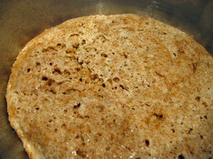 In the evening, mix all the ingredients for the fermented component in a medium-size bowl. Leave it at room temperature for 12 hours. It won’t rise much, but you should notice fermentation next day.