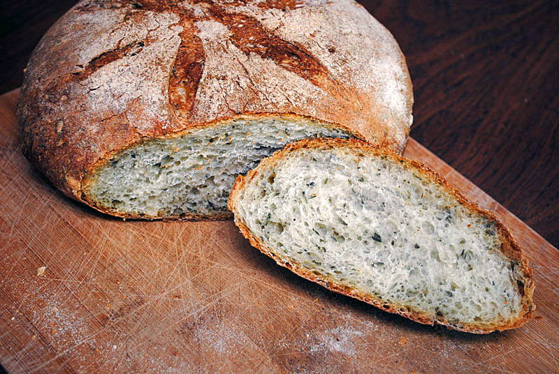 Comments: I will not lie to you, this is a project. The bread requires a sourdough starter, a poolish (fermented flour using small amount of commercial yeast and prepared the day before), and commercial yeast in the final dough. But it is a total pleasure to work with, rises like a rocket and the texture and taste? You will not miss the butter, that’s for sure. As Karen said, it keeps a lot better than the traditional version. And freezes beautifully too.