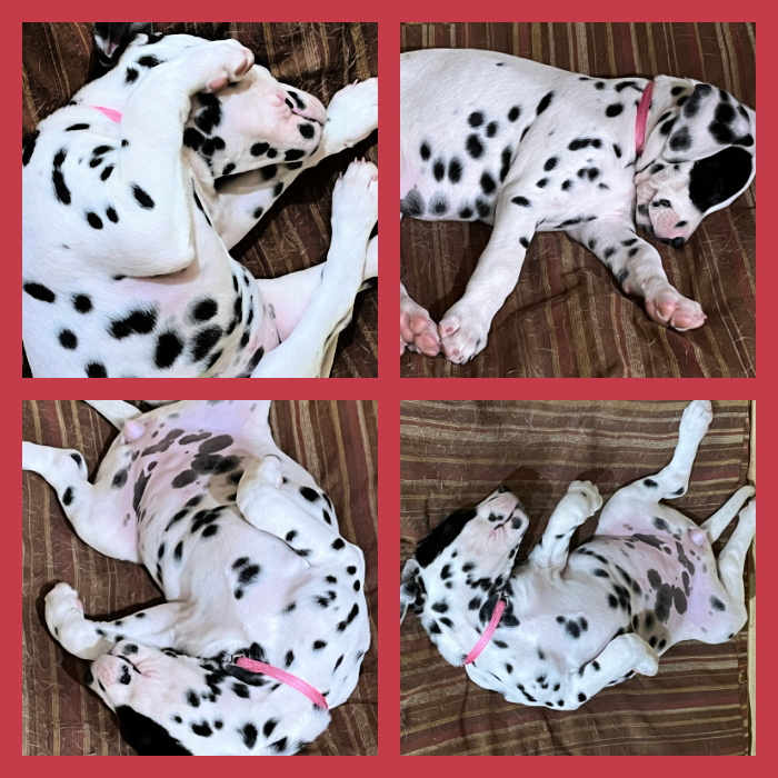 We have great news! On May 20th, we brought home a little bundle of joy, an 8 weeks-old female Dalmatian called Star. Full name is Ziggy Star Barker, a play with David Bowie and Star Baker. She is feisty, sweet, and the boys accepted either very enthusiastically (Prince) or kind of reluctantly (you know who). We are thrilled to have her join our home!