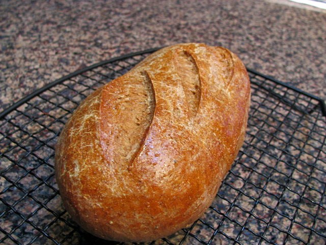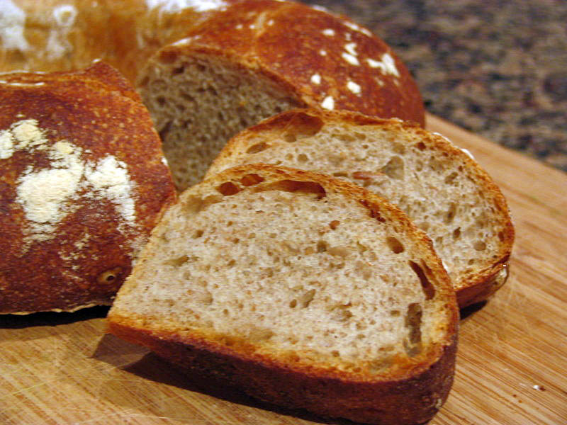 This loaf of bread was made on a whim on a busy weekend mainly devoted to the lab. Tired of refreshing my starter and putting it back in the fridge, I decided that – no matter what – we would be having home-made bread on Super Bowl Sunday. I had to cheat, though. The dough got spiked with some commercial yeast to speed up fermentation. Let’s hope the Wild Yeast Gods will have mercy on me… 😉