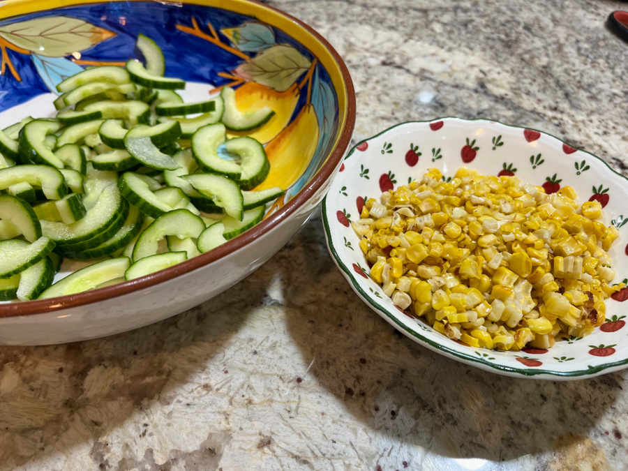 Peel the cucumbers in alternating strips and trim ends. Halve lengthwise and slice thin. Transfer to a colander and sprinkle 1 to 2 tsp kosher salt all over the slices. Set aside for 15 minutes.