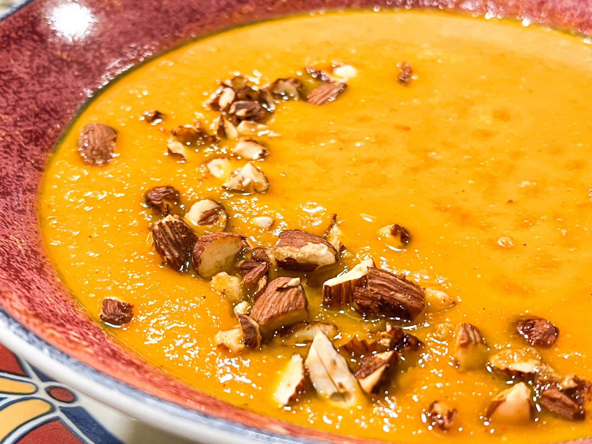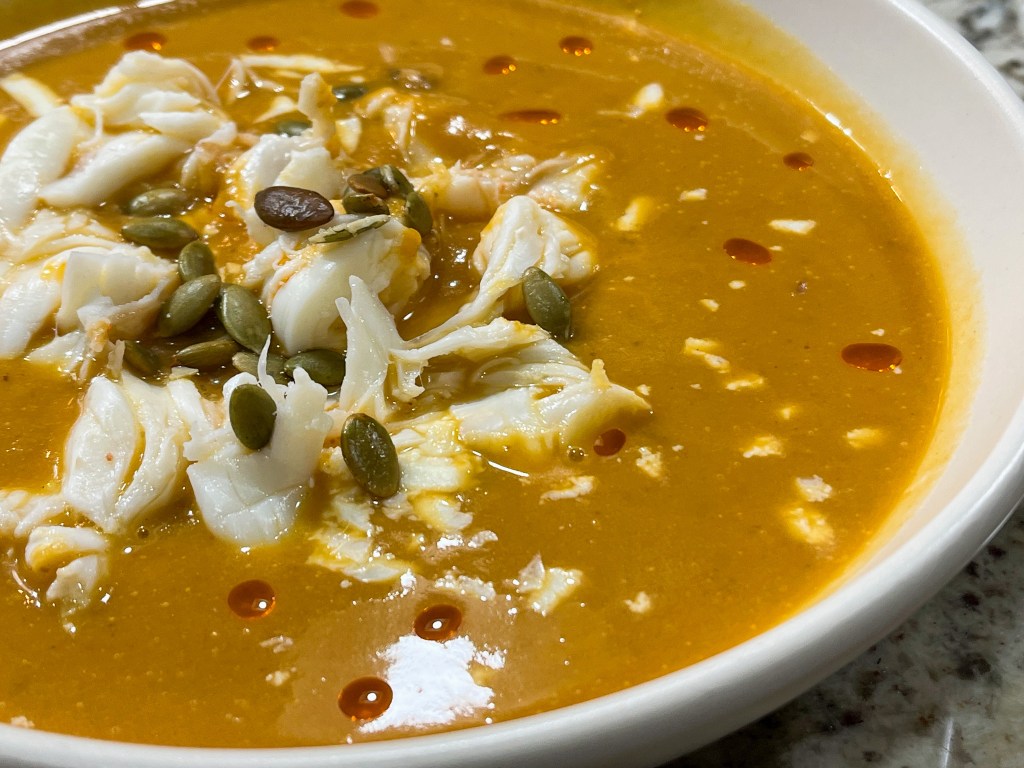 And now for leftovers… Full credit for the husband not only for the idea but the execution. Phil grilled lobster tails and used the meat to bring the soup back to center stage. It was absolutely outstanding! I highly recommend this combination, blew my culinary mind. To decorate, I used chili oil drops. Those little tiny drops pack a punch. A nice ingredient to have around. Big thank you to Naturally Nidhi for the recipe.