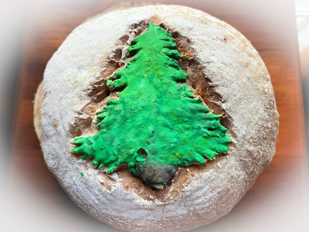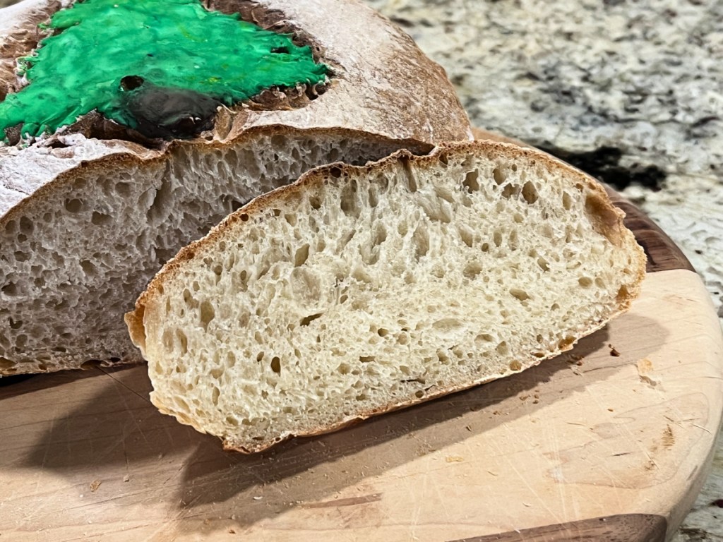 Comments: The air-fryer will never be my choice to make sourdough bread, but I was pleasantly surprised by how well things turned out. Let’s suppose you are on a road trip and still want to bake some bread while away from home, maybe you can take your fryer with you… Just a thought! I do like to experiment, so this was actually pretty cool. I painted the surface with Sugarprism green after baking.