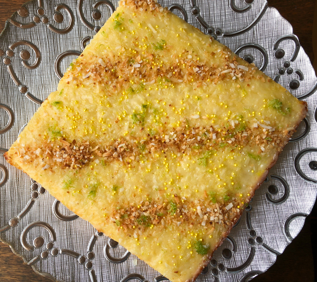 Make the cookie base. In a Kitchen Aid type mixer, whisk the yolks with sugar and lemon zest until pale. Replace the whisk with the leaf beater, add the sifted flour with baking powder, salt, and then the butter. Mix well until creamy.  Place in a piece of plastic wrap, form as a disc and refrigerate for 8 hours.
