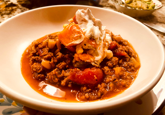 We enjoyed it over bison chili (made with this recipe, but using ground bison instead of ground turkey). The yogurt tames that heat from the chili, acts as a refreshing breeze on a warm summer night. A delicious dinner, that will be on our menu for sure in the near future. The husband already requested it…