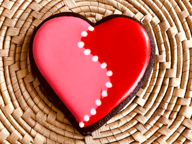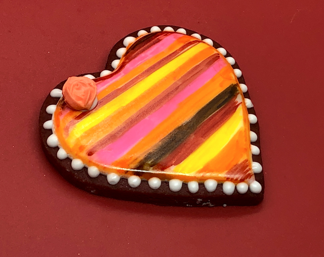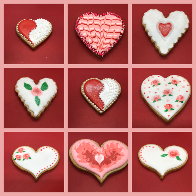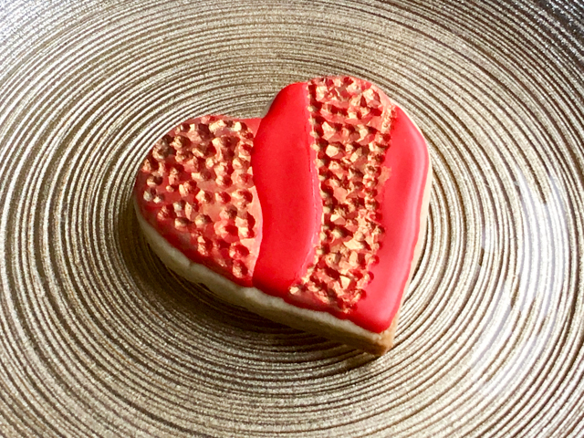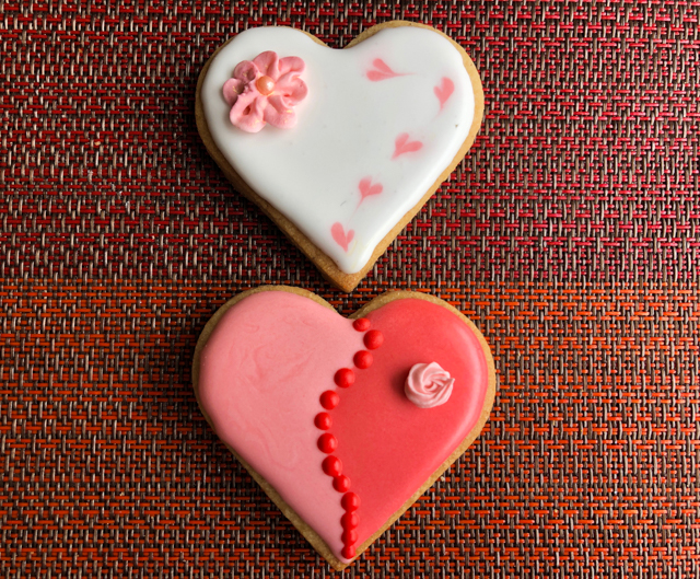 I consider this one a work in progress, as I could not quite match the beauty of the ones made by @thegracefulbaker. The design is actually quite simple. You pipe fine lines dividing the heart in wavy sections, then flood areas that are not touching. Wait for those to crust, maybe 30 minutes or so, and flood the others. If the consistency of your icing is thick enough, the sections will be more “puffed up” and it will look quite striking. I did not get there, but I still like the look.